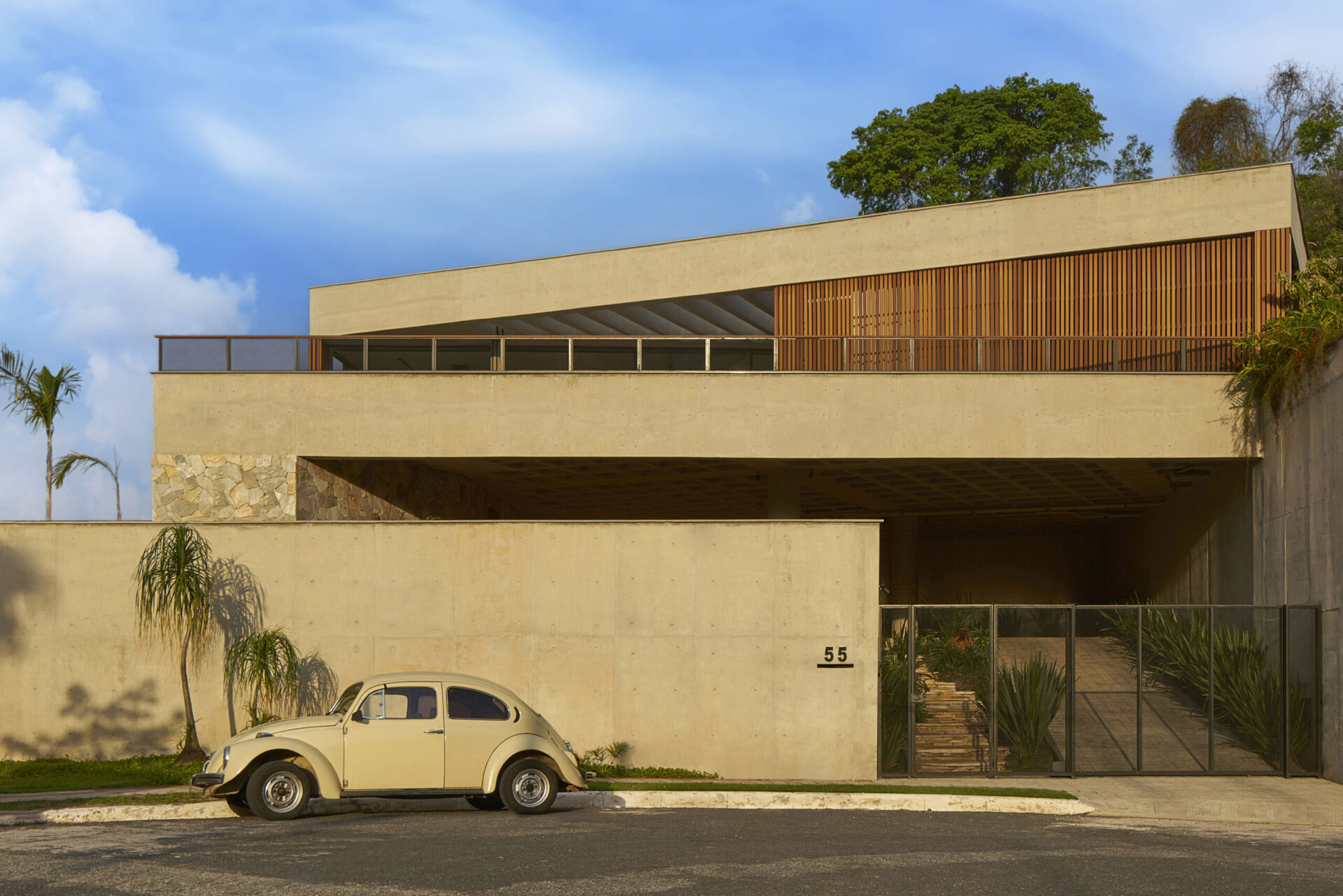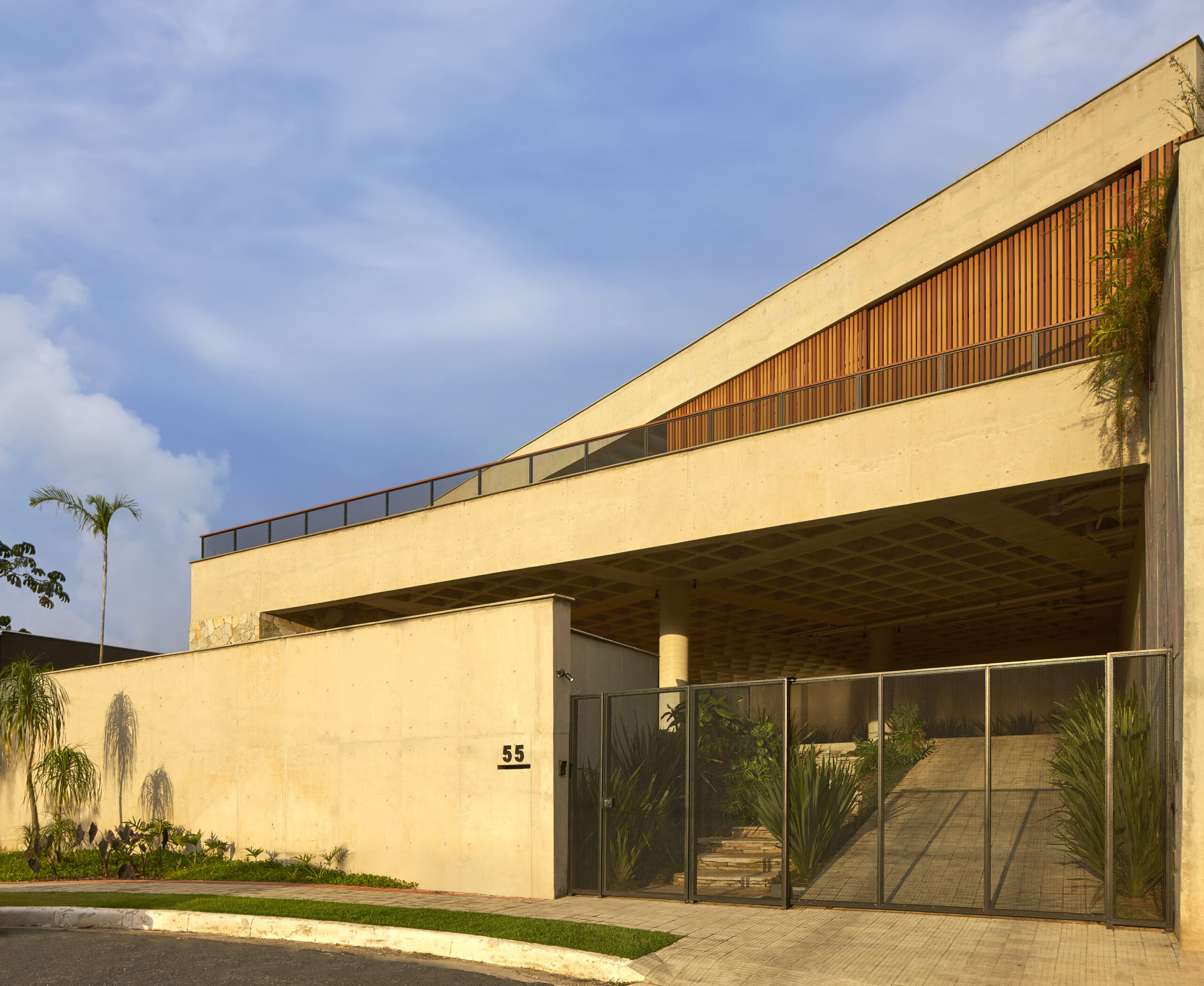 Sua posição no alto de um vale proporciona visadas singulares da cidade. A utilização de materiais em suas formas puras, nos proporciona uma arquitetura simples, viva e potente.