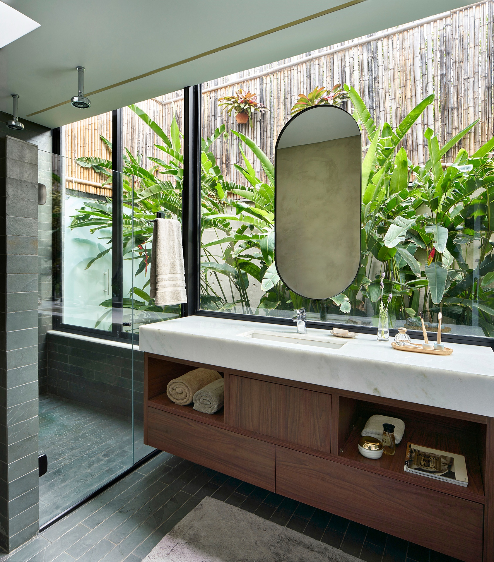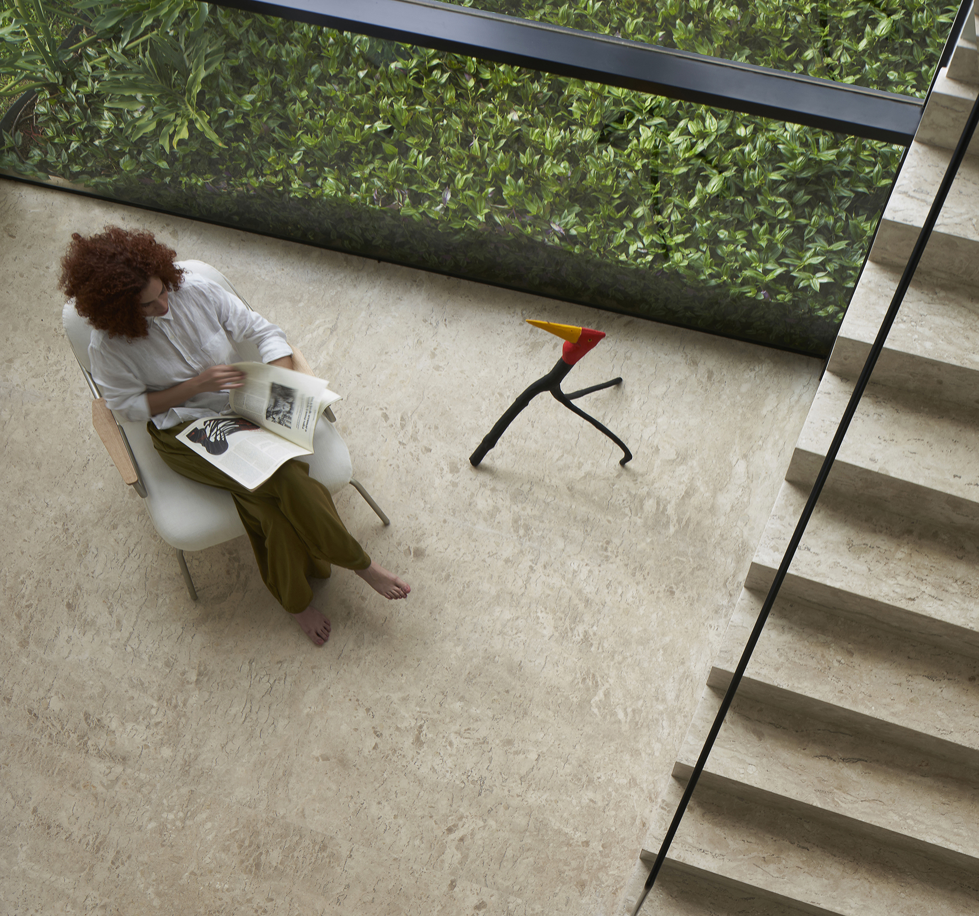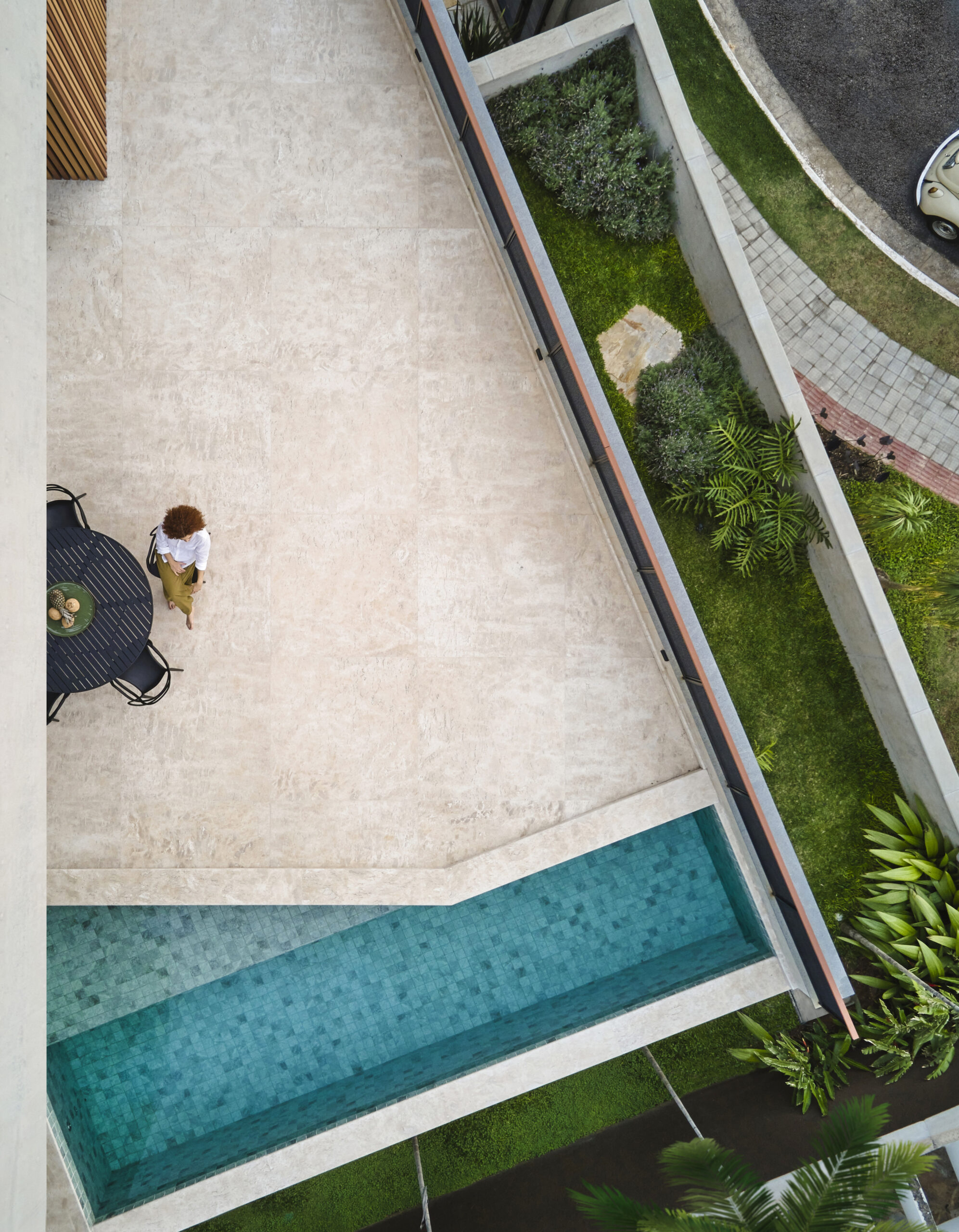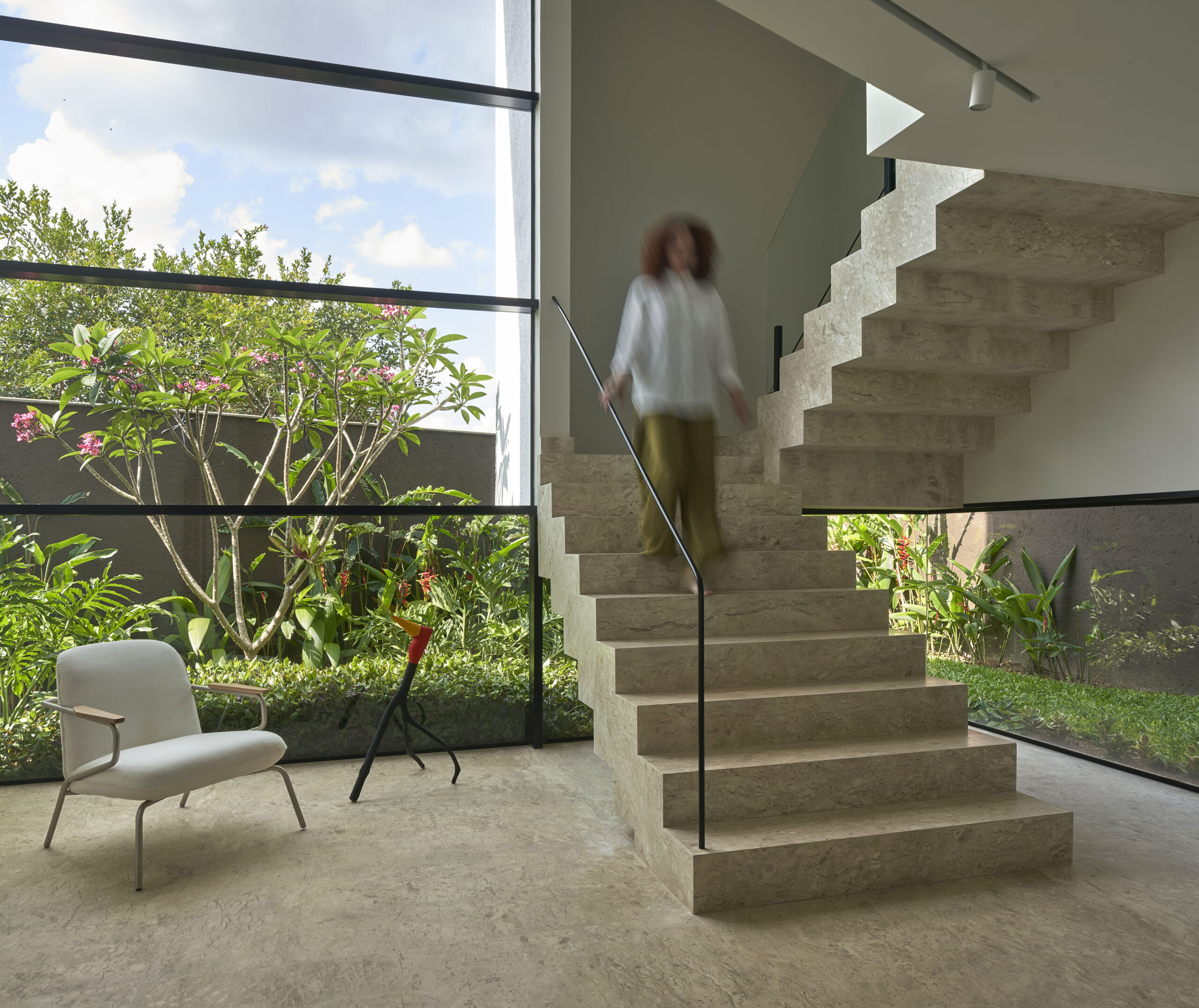 Esse diálogo simultâneo com o urbano e a natureza constrói uma atmosfera dualista, em que a paisagem é protagonista. Sob esse olhar, é possível tanto aproveitar a tranquilidade do quarto abraçado pelo verde ao som do vento sobre as folhas, como também abrir-se à rua pela varanda, vislumbrando no horizonte as luzes da cidade.