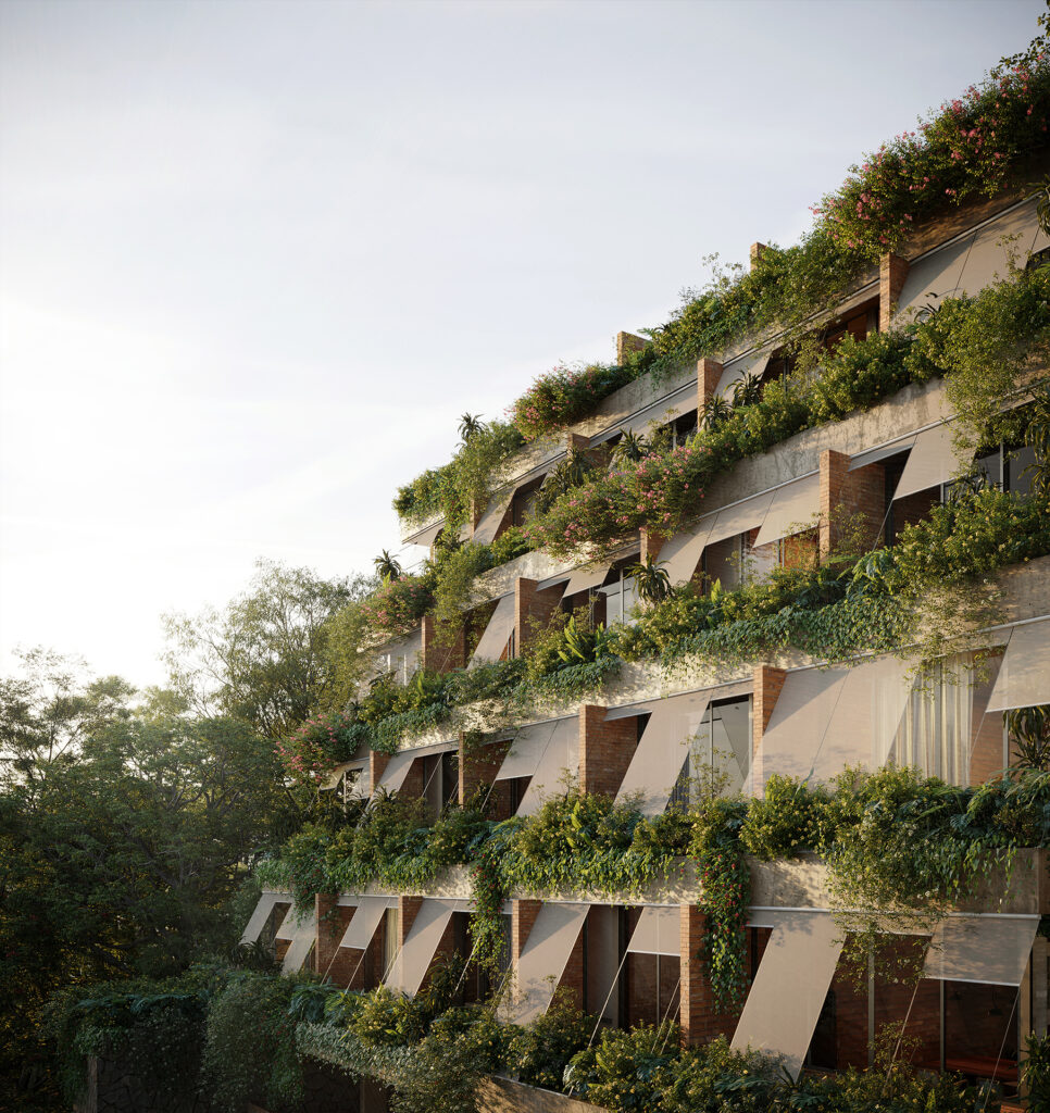 Ao mesmo tempo em que convida à contemplação de seu entorno, o Edifício Paisagem mimetiza a natureza que o envolve e emoldura a vista através de seus terraços, por meio de um desenho que desafia o lugar comum, de forma singular em sua essência conceitual, habitacional, paisagística e estética.